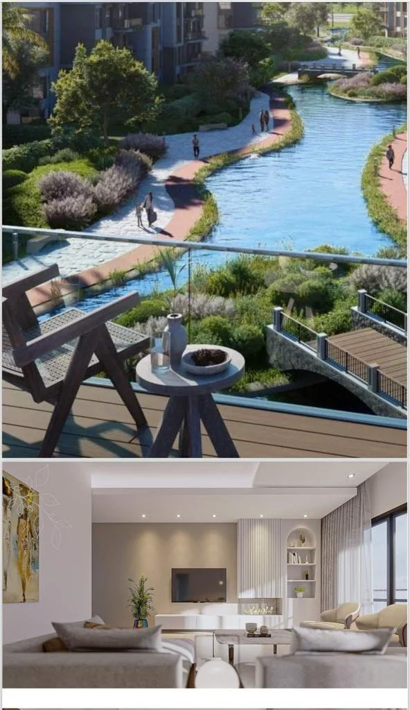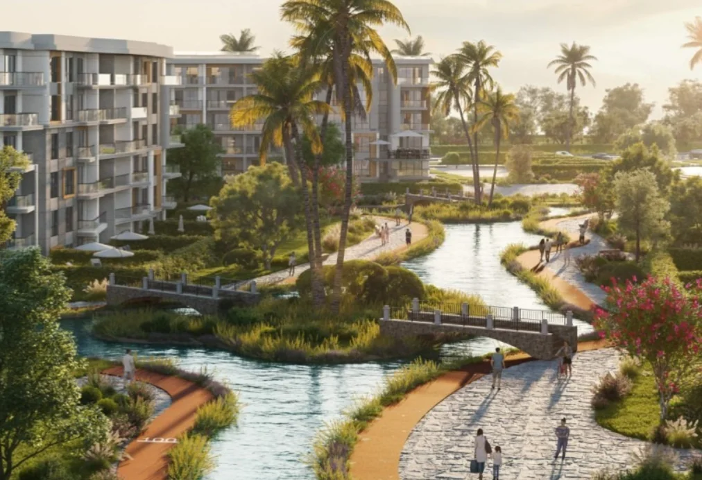 شقة للبيع: غرفة نوم واحدة في الطابق الأرضي بكومبوند Palm Hills New Cairo، Phase Cleo. تحتوي الوحدة على حديقة خاصة بمساحة 30 م² مع إمكانية الوصول المباشر إلى حمام السباحة. المشروع من Palm Hills Developments.