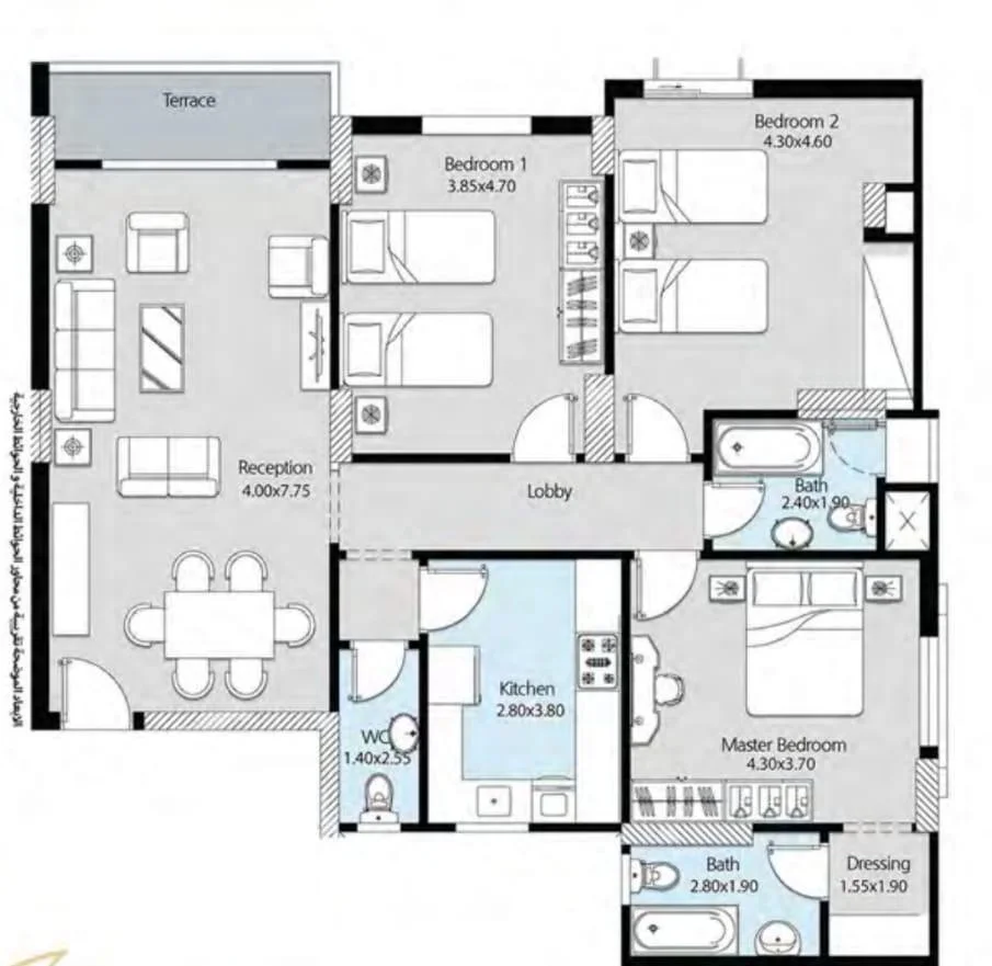 المساحة المبنية: 169 م². عدد الغرف: 3 • الحمامات: 3. التشطيب: نصف تشطيب. التسليم: 2027. السعر الإجمالي: 5,500,000 جنيه مصري. خطة السداد: دفعة مقدمة 1,138,910 جنيه مصري؛ المتبقي 4,361,090 جنيه مصري مستحق حتى مايو 2030. مناسبة للعائلات والمستثمرين الباحثين عن نمط حياة عصري بالعاصمة الإدارية.