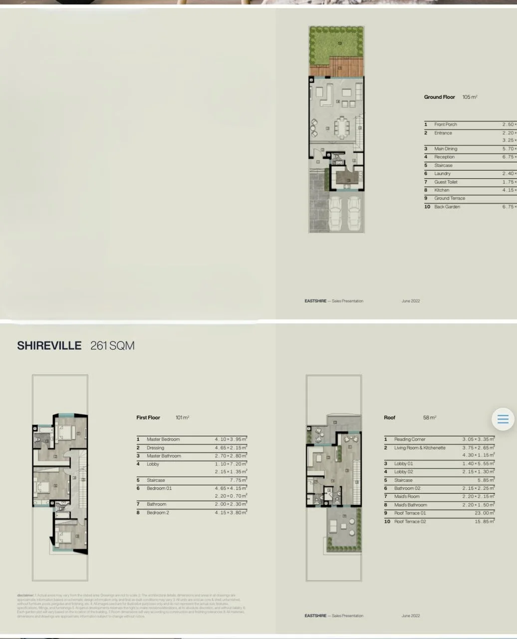 تاون هاوس مميز مكون من 3 غرف للبيع في كمبوند إيست شاير بالتجمع الخامس من شركة القمزي العقارية. يقع على قطعة أرض بمساحة 169 م² مع سطح بمساحة 58 م²، يمتد على 3 طوابق ويشمل غرفة خادمة بحمام خاص. يتوفر عرض تمويل بمقدم 10% وتسهيلات سداد حتى 7 سنوات.