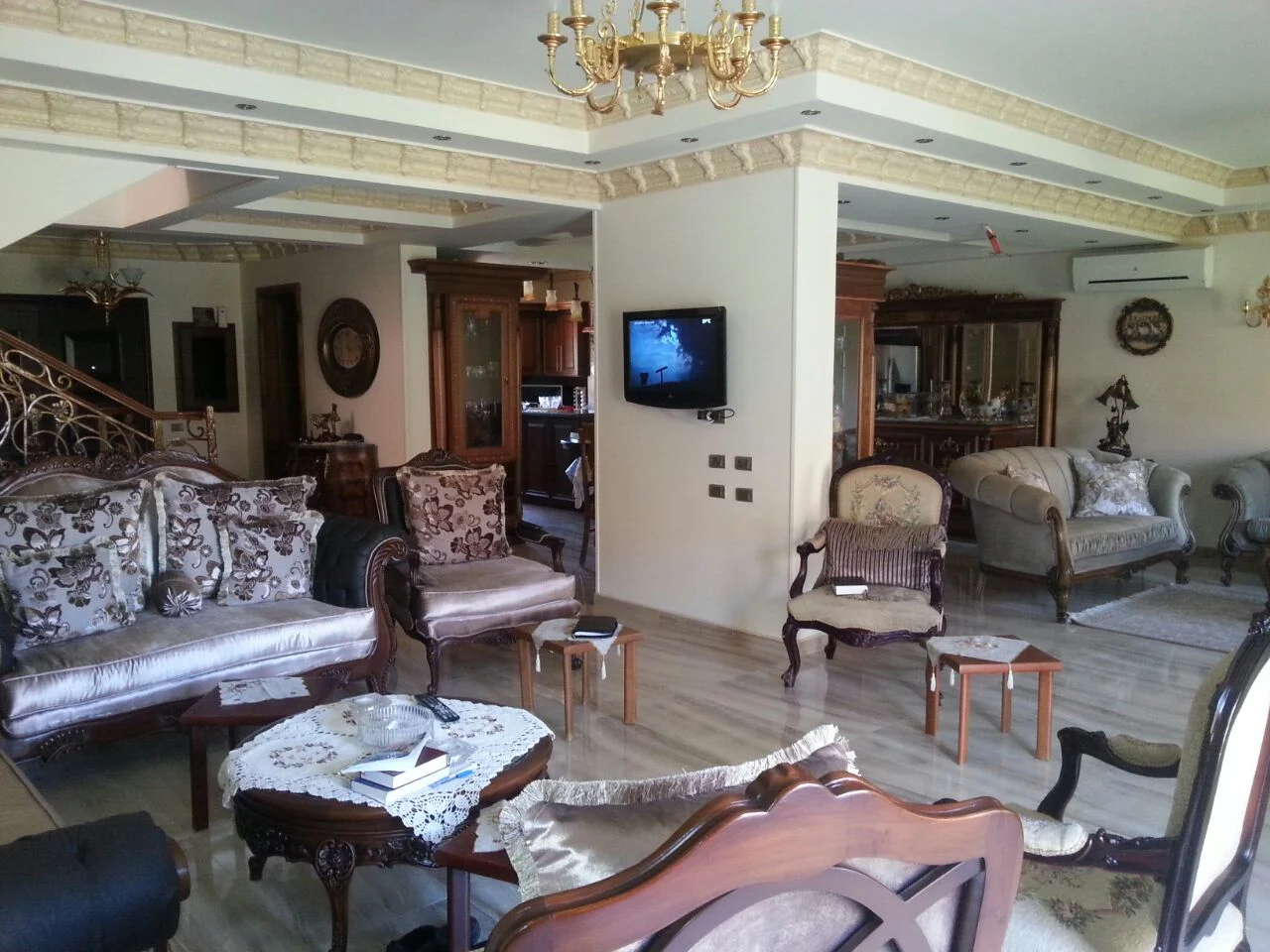 Elegant, fully finished 5-bedroom villa for sale in El Rehab, New Cairo. The property is arranged over ground, first and roof levels with a built-up area of 350 m² on a 450 m² plot. Features include a private 250 m² garden, 150 m² rooftop terrace, 4 bathrooms, a fully fitted...