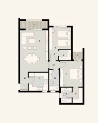 Built-up area: 117 sqm. Bedrooms: 2. Bathrooms: 2. Finishing: Not finished. Delivery date: 31-12-2028. Price: 7,964,000. Payment plan: Down payment 2,000,000; Remaining 5,964,000 payable until 20 Nov 2032. Maintenance fee: 575,760.