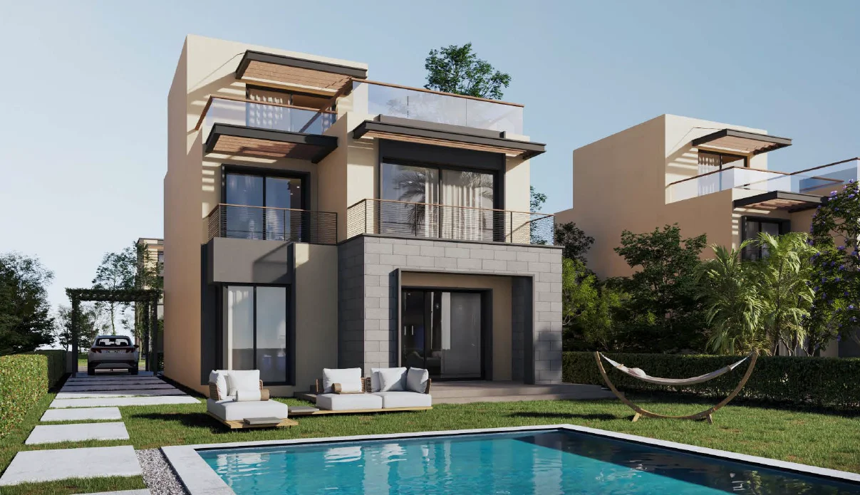 Discover this incredible villa for sale in Garden Lakes, featuring a spacious garden area of 219 m² and a rooftop terrace of 73 m², perfect for relaxation and entertaining.
