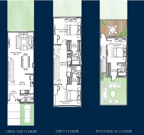 A three-bedroom townhouse for sale in Azzar Legacy, New Cairo, developed by Reedy Group. The unit is arranged over three levels (ground floor, first floor and penthouse) and includes one designated parking space. Residents may access the compound swimming pool via a club membership available for an additional fee (295,320)....