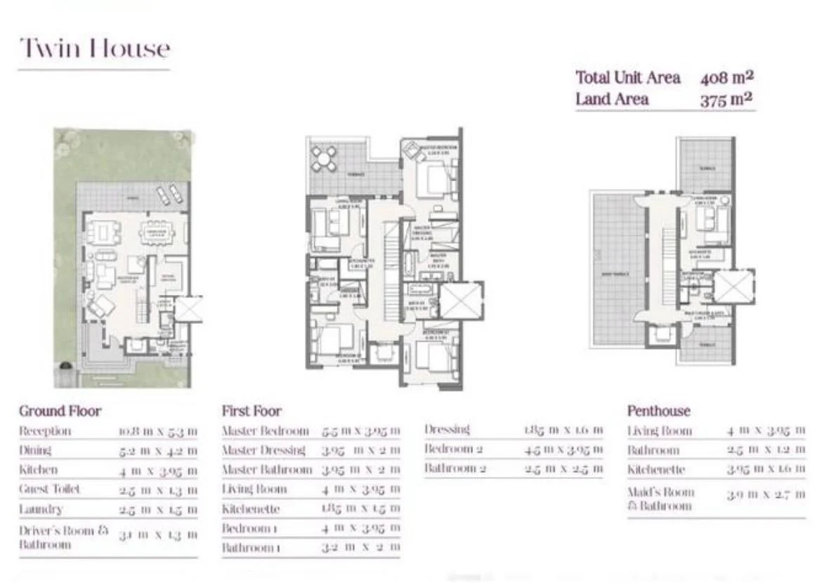 Discover this stunning twinhouse for sale in Soleya, featuring pool access and a spacious layout spread over three levels: ground, first, and penthouse. With a built-up area of 408 sqm and a generous land area of 375 sqm, this residence offers 3 bedrooms, 5 bathrooms, a maid's room with an...