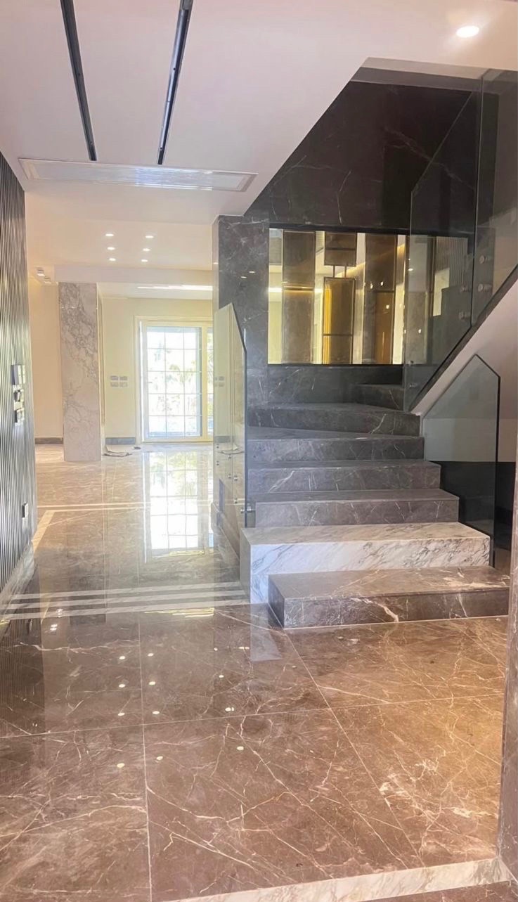 This luxurious furnished villa for rent in Mivida Emaar boasts a spacious area, providing a refined living experience with generous space and full finishing, ideal for long-term comfortable stays.